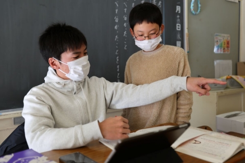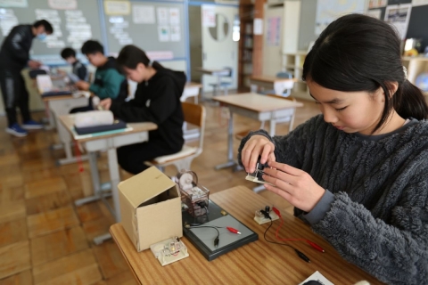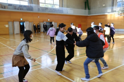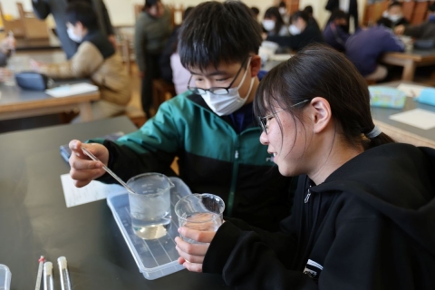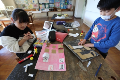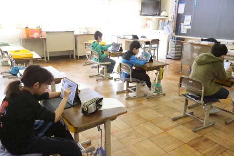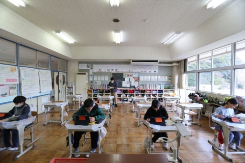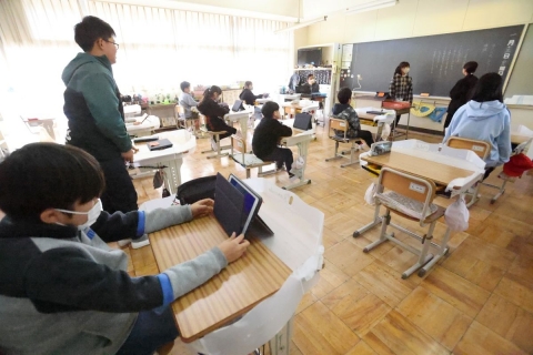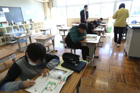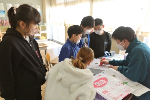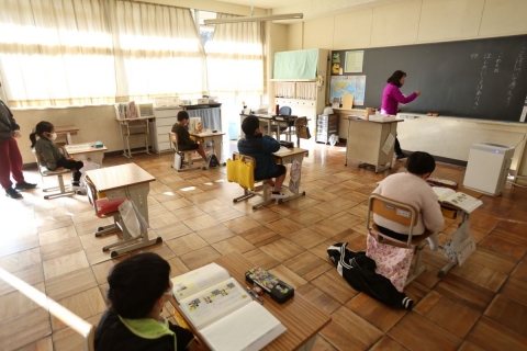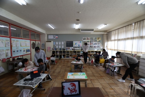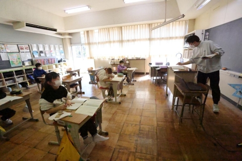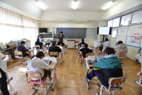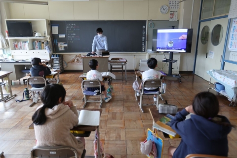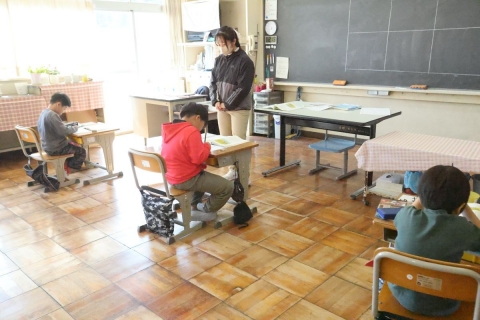 教室でインタビュー ビニルハウスの見学