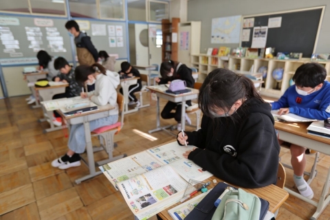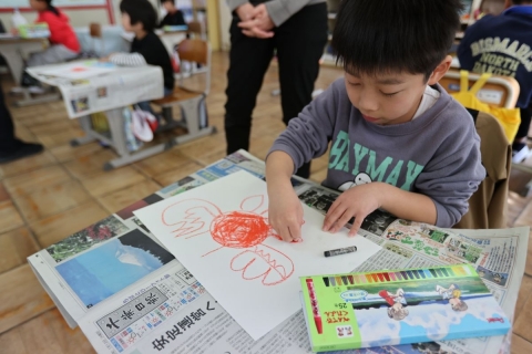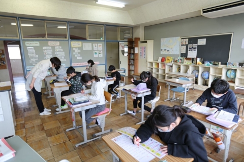 肥料をやる時期や病気を防ぐ方法などを聞き,どの子も熱心にメモを取っていました。また,「育てている野菜には去年育てたアサガオのように,双葉や本葉があるのか?」という疑問や「どうして渡辺さんは農家になったのか?」というような質問もしていました。