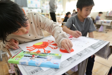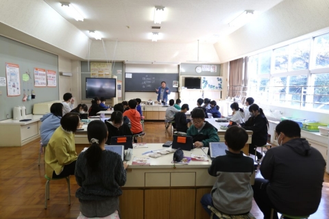 2年生は生活科「花ややさいをそだてよう(4)」で,自分の好きな野菜を栽培しています。本を読んで育て方を調べたり,家の人に聞いたりして育ててはいましたが,「ぜひ,農家の渡辺さんに聞きたい!」という子どもたちの要望があり,ゲストティーチャーとしてお招きしました。
