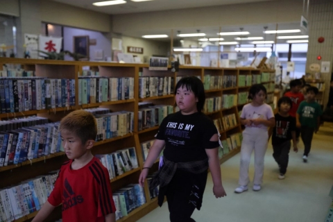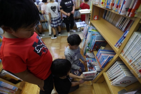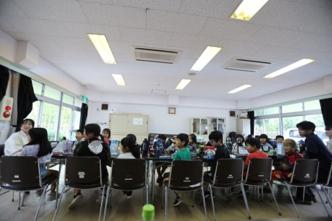 今日は、雨でしたが、子どもたちは、元気に学習に取り組んでいました。1、2年生は、運動会に向けてラジオ体操の練習をしていました。3年生は、算数の解き方をホワイトボードに書いて発表していました。4年生は、タブレットで見つけた植物を写真にとって観察しました。5年生は、図書室で分類番号について調べていました。6年生は、算数の練習問題に取り組みました。