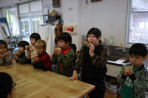 今日も様々な学習に意欲的に取り組んでいました。5・6年生は家庭科の授業で裁縫に挑戦し、針と糸を使って真剣な表情で作品づくりに励んでいました。3年生はALTの先生と一緒に英語の授業をゲームをしながら楽しみながら、元気よく取り組んでいました。1・2年生は体育の時間に表現運動を行い、グループで決めた動物を楽しそうに表現していました。5年生は、バケツで育てた稲を千歯こきをつかって脱穀していました。学年に応じた多様な学習活動を通じて、子どもたちは意欲的に学校生活を送っています。