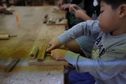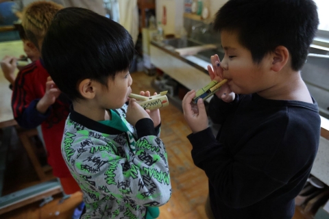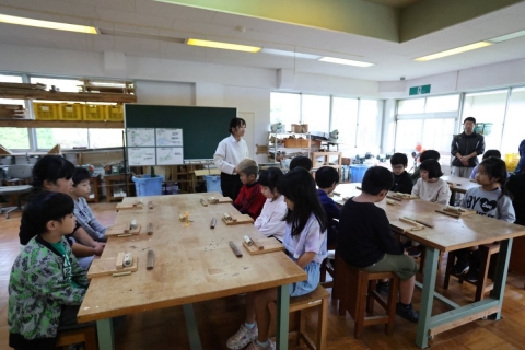 今日は、1・2年生が豊浜小学校と合同で大多喜県民の森と天賞文庫へ校外学習に出かけました。県民の森では、竹細工に挑戦し、うぐいす笛を作りました。竹の特徴や使い道について学び、環境にやさしい素材としての可能性も実感しました。また、廃材を使ったサスティナブルアートにも取り組み、創造力を発揮して楽しみました。午後は天賞文庫を訪れ、図書館の仕組みや本の借り方について学習し、本に親しむ良い機会となりました。