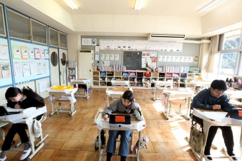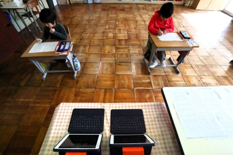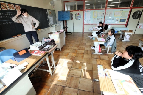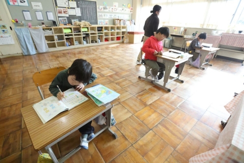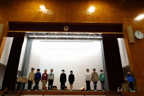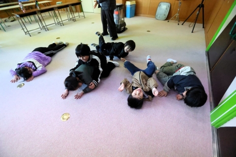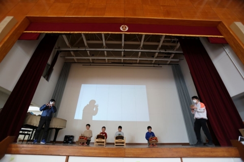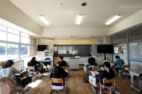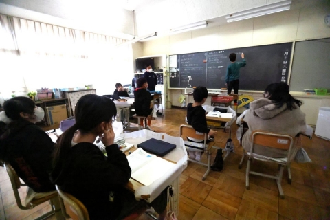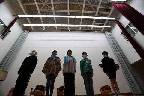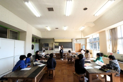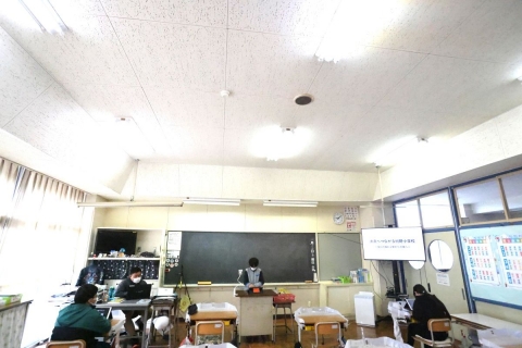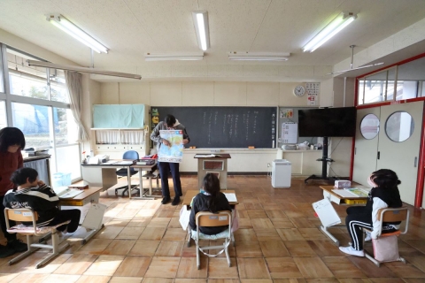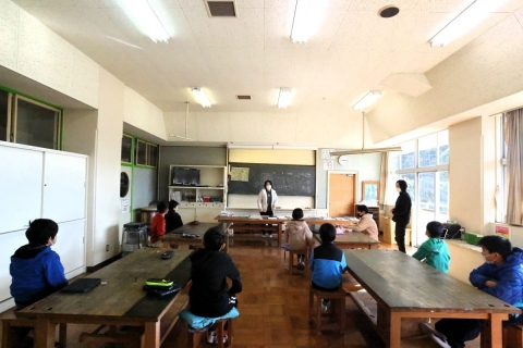 教室でインタビュー ビニルハウスの見学