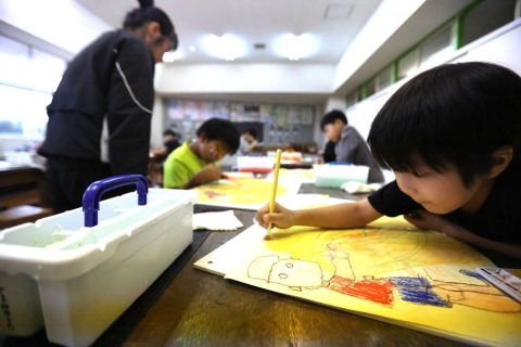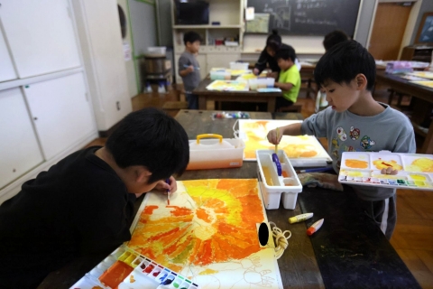 1・2年生は、地域の方が持ってきてくださったジャンボかぼちゃの大きさにビックリしながら、心を込めて絵を描きました。3・4年生は、お友達をモデルに人物画に挑戦し、表情や動きを観察しました。5・6年生は、昨日学習したキッザニア東京と羽田クロノゲートでの体験をふり返り、学びを深めました。また、5年生は、水産業の学習で鰹節を削る体験をしました。みんな元気に、楽しみながら学校生活を送っています。