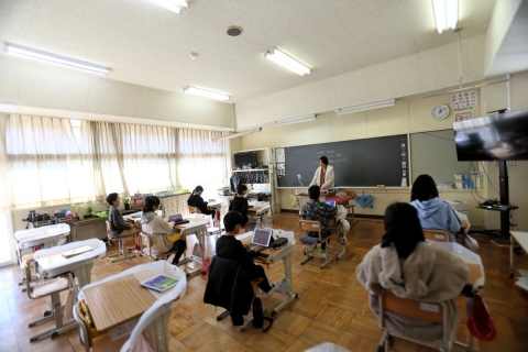 今日は、朝自習の時間に「なかよし学習」を行いました。高学年の児童が低学年の学習を優しくサポートし、教室にはあたたかな交流の姿が広がりました。3・4年生は、地域の方をお招きし、総野地区のお祭りや神楽についてお話を伺いました。伝統ある獅子舞にも実際に触れさせていただき、児童たちは目を輝かせながら地域の文化に親しんでいました。5・6年生は、アウトドアメーカーの方とオンラインで学習しました。企業の理念を聞く中で、社会に役立つものづくりへの思いや工夫を知り、学びを深めることができました。今日も学年ごとに特色ある学習ができた一日となりました。