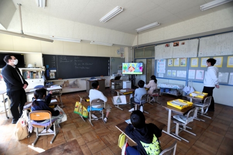 今日は、1年生の算数で数図ブロックを使って学習していました。2年生は音楽室で学習しました。3年生、5年生はALTと楽しく英語の学習、4年生は折れ線グラフのかき方、6年生は対象の図形について学習しました。休み時間も元気に遊んでいました。
