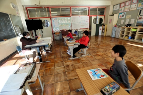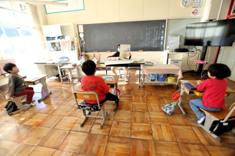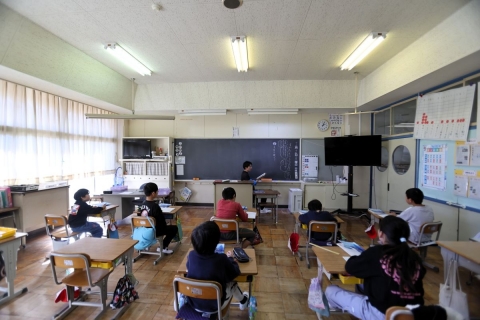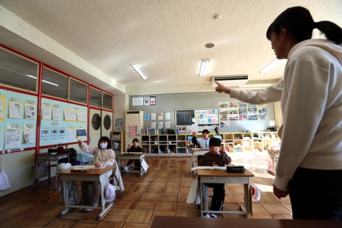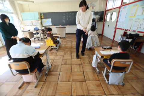 今日は、1年生が鉛筆の持ち方の練習と春の草花や虫を調べていました。少しずつ学校生活に慣れてきています。2年生は、国語「ふきのとう」で登場人物の気持ちを動作で表していました。3,4年生は、体育でジェンカを踊っていました。5年生は、1年生を迎える会のゲームを話し合っていました。6年生は書写で「きずな」の練習をしていました。みんな意欲的に学習に取り組んでいました。