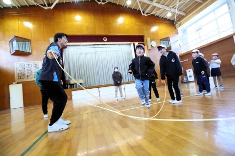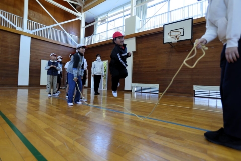 今日は、業間の時間に全校で長縄8の字とびの練習に取り組みました。どの班も声を掛け合いながら、リズムよく跳ぶ姿が見られました。特に1年生は、縄に入るタイミングを合図してもらい、少しずつ縄に入れるようになるなど、成長が感じられました。授業では、どの学級も落ち着いた雰囲気の中で学習に取り組み、話をよく聞き、自分の考えを大切にする姿が印象的でした。今後も一人一人の頑張りを大切にしていきます。