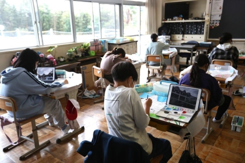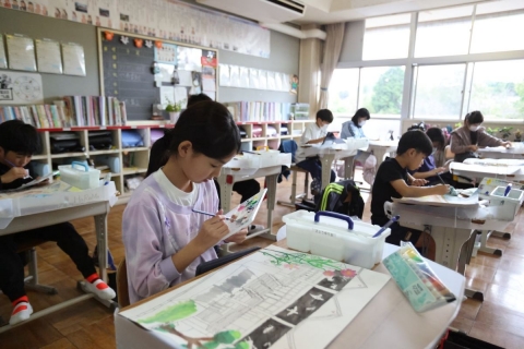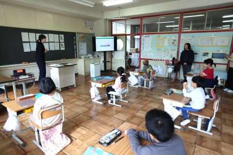 肥料をやる時期や病気を防ぐ方法などを聞き,どの子も熱心にメモを取っていました。また,「育てている野菜には去年育てたアサガオのように,双葉や本葉があるのか?」という疑問や「どうして渡辺さんは農家になったのか?」というような質問もしていました。