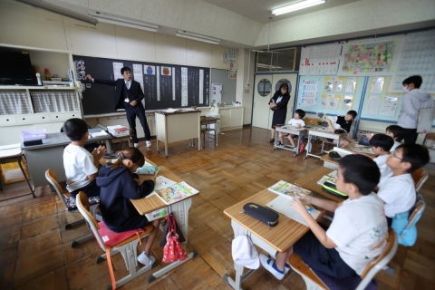 2年生は生活科「花ややさいをそだてよう(4)」で,自分の好きな野菜を栽培しています。本を読んで育て方を調べたり,家の人に聞いたりして育ててはいましたが,「ぜひ,農家の渡辺さんに聞きたい!」という子どもたちの要望があり,ゲストティーチャーとしてお招きしました。