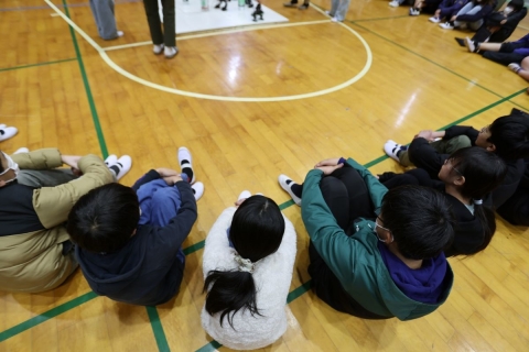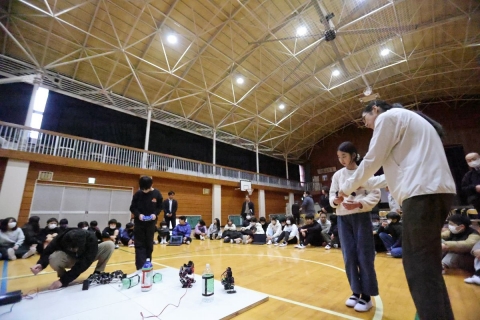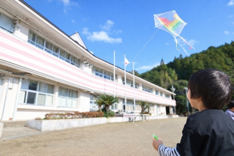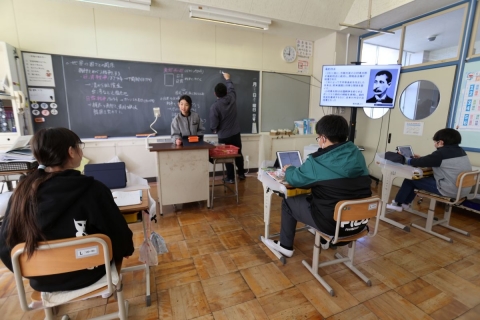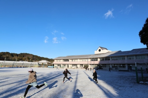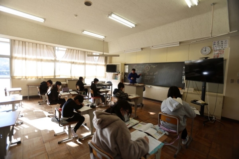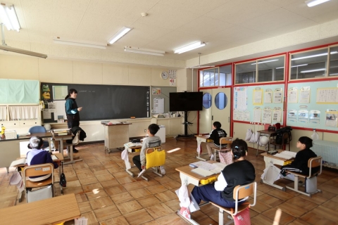 教室でインタビュー ビニルハウスの見学