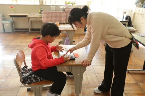 2年生は生活科「花ややさいをそだてよう(4)」で,自分の好きな野菜を栽培しています。本を読んで育て方を調べたり,家の人に聞いたりして育ててはいましたが,「ぜひ,農家の渡辺さんに聞きたい!」という子どもたちの要望があり,ゲストティーチャーとしてお招きしました。