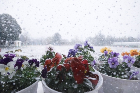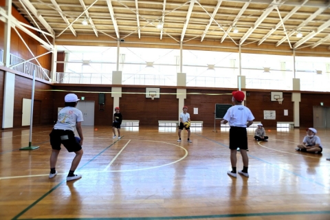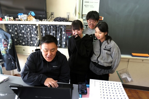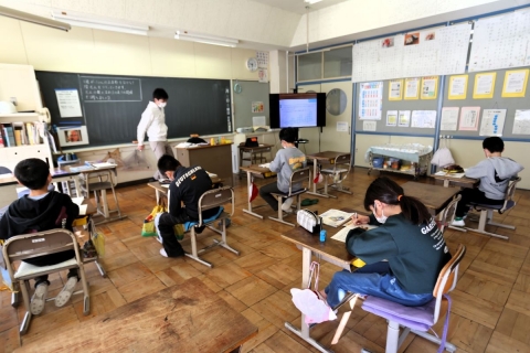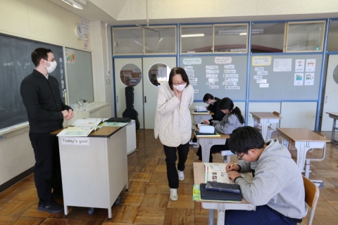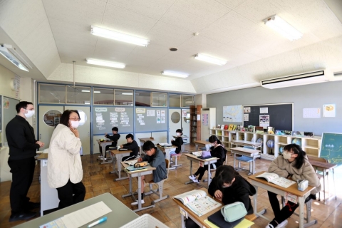 教室でインタビュー ビニルハウスの見学