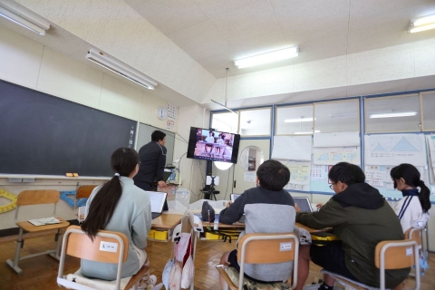 質問し終えた後には,渡辺さんのビニルハウスにおじゃまして,ナスやトマトを見せていただきました。見たこともないほど,大きなナスの背丈や葉に驚いたり、色づき始めたトマトに目を輝かせていました。「また,渡辺さんに教えてもらいたい。」と口々に言っていました。