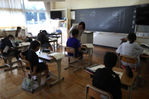 肥料をやる時期や病気を防ぐ方法などを聞き,どの子も熱心にメモを取っていました。また,「育てている野菜には去年育てたアサガオのように,双葉や本葉があるのか?」という疑問や「どうして渡辺さんは農家になったのか?」というような質問もしていました。