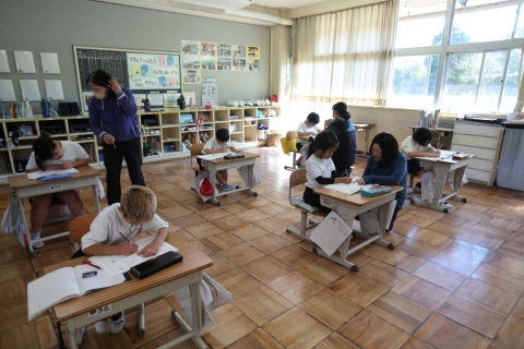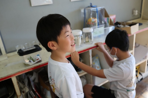2年生は生活科「花ややさいをそだてよう(4)」で,自分の好きな野菜を栽培しています。本を読んで育て方を調べたり,家の人に聞いたりして育ててはいましたが,「ぜひ,農家の渡辺さんに聞きたい!」という子どもたちの要望があり,ゲストティーチャーとしてお招きしました。