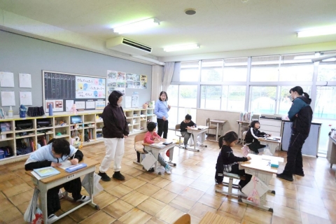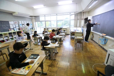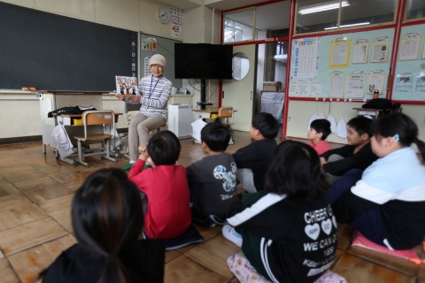 2年生は生活科「花ややさいをそだてよう(4)」で,自分の好きな野菜を栽培しています。本を読んで育て方を調べたり,家の人に聞いたりして育ててはいましたが,「ぜひ,農家の渡辺さんに聞きたい!」という子どもたちの要望があり,ゲストティーチャーとしてお招きしました。