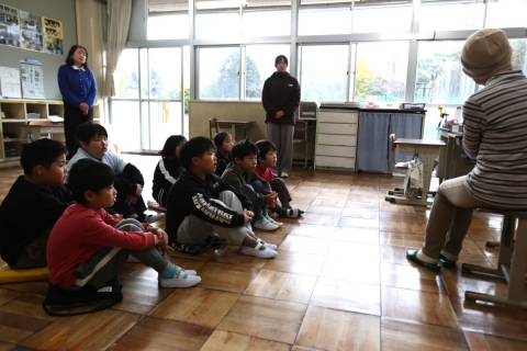 肥料をやる時期や病気を防ぐ方法などを聞き,どの子も熱心にメモを取っていました。また,「育てている野菜には去年育てたアサガオのように,双葉や本葉があるのか?」という疑問や「どうして渡辺さんは農家になったのか?」というような質問もしていました。