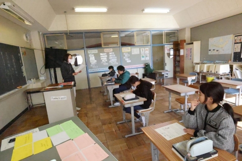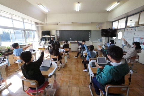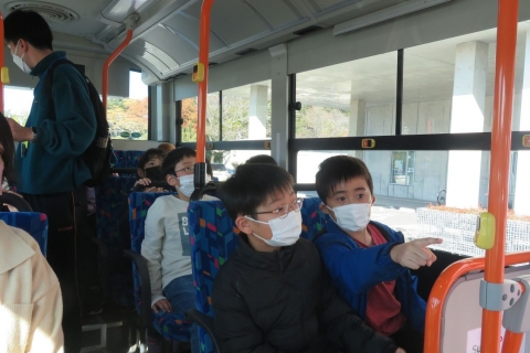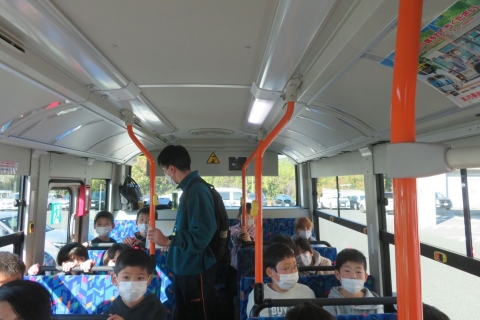 質問し終えた後には,渡辺さんのビニルハウスにおじゃまして,ナスやトマトを見せていただきました。見たこともないほど,大きなナスの背丈や葉に驚いたり、色づき始めたトマトに目を輝かせていました。「また,渡辺さんに教えてもらいたい。」と口々に言っていました。