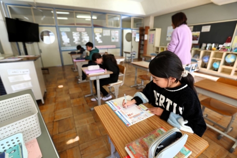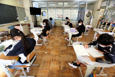 肥料をやる時期や病気を防ぐ方法などを聞き,どの子も熱心にメモを取っていました。また,「育てている野菜には去年育てたアサガオのように,双葉や本葉があるのか?」という疑問や「どうして渡辺さんは農家になったのか?」というような質問もしていました。