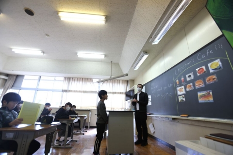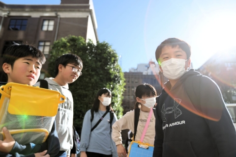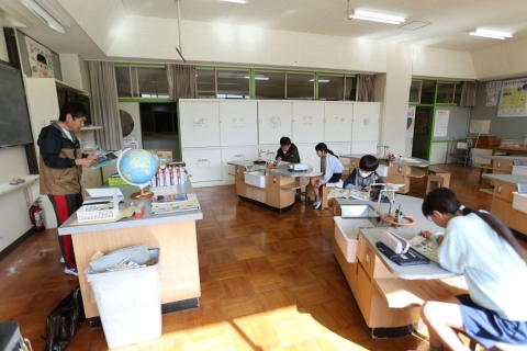質問し終えた後には,渡辺さんのビニルハウスにおじゃまして,ナスやトマトを見せていただきました。見たこともないほど,大きなナスの背丈や葉に驚いたり、色づき始めたトマトに目を輝かせていました。「また,渡辺さんに教えてもらいたい。」と口々に言っていました。