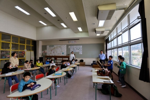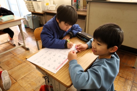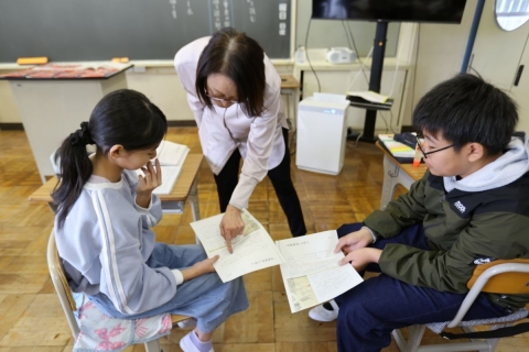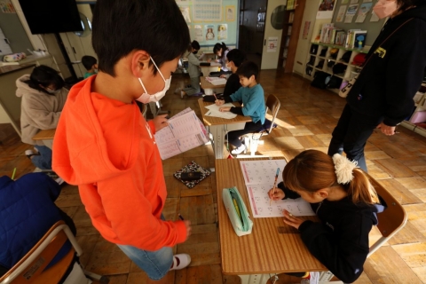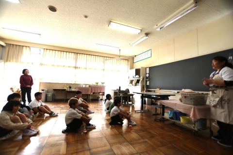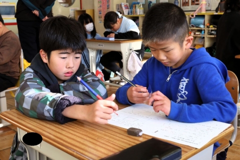 肥料をやる時期や病気を防ぐ方法などを聞き,どの子も熱心にメモを取っていました。また,「育てている野菜には去年育てたアサガオのように,双葉や本葉があるのか?」という疑問や「どうして渡辺さんは農家になったのか?」というような質問もしていました。