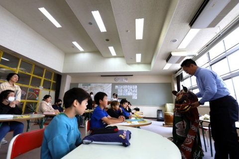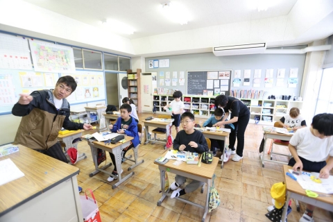 2年生は生活科「花ややさいをそだてよう(4)」で,自分の好きな野菜を栽培しています。本を読んで育て方を調べたり,家の人に聞いたりして育ててはいましたが,「ぜひ,農家の渡辺さんに聞きたい!」という子どもたちの要望があり,ゲストティーチャーとしてお招きしました。