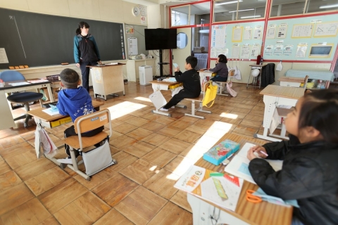 今日は、1年生が鉛筆の持ち方の練習と春の草花や虫を調べていました。少しずつ学校生活に慣れてきています。2年生は、国語「ふきのとう」で登場人物の気持ちを動作で表していました。3,4年生は、体育でジェンカを踊っていました。5年生は、1年生を迎える会のゲームを話し合っていました。6年生は書写で「きずな」の練習をしていました。みんな意欲的に学習に取り組んでいました。