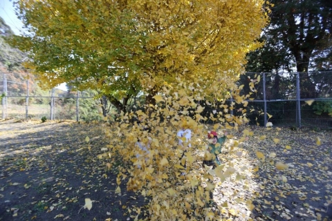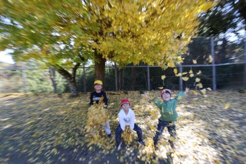 今日はとても暖かな一日になり、総野小学校は穏やかな日差しに包まれていました。休み時間になると、子供たちは元気いっぱいに校庭へ飛び出し、鬼ごっこやボール遊びを楽しむ声が響きました。校庭ではイチョウの葉が美しく色づき、一面に黄色い絨毯を広げたようで、歩くたびにふわりと葉が舞い上がり、子供たちの笑顔をいっそう輝かせていました。