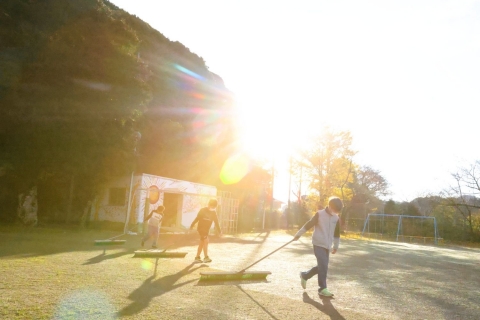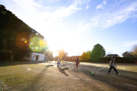 今日は地震を想定した避難訓練を行いました。みんな先生の指示をよく聞いて、落ち着いて避難することができました。訓練の後は全校でグラウンドの除草作業を行いました。休み時間も自主的に行い、とてもきれいになりました。