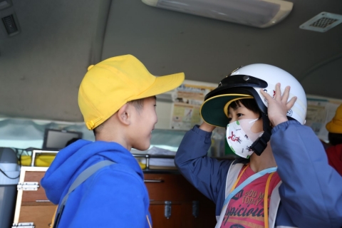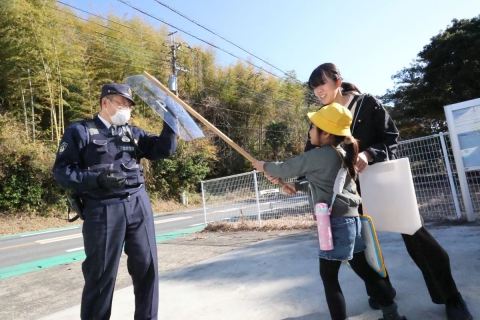 今日は、勝浦消防署の皆さんにご協力いただき、火災避難訓練を行いました。避難を告げる放送が流れると、児童は皆落ち着いて行動し、先生の指示に従って速やかに避難することができました。高学年の5・6年生は、水消火器を使った初期消火の訓練に挑戦し、真剣な表情で実践的な体験をしました。1~4年生は消防車や救急車を見学し、装備の説明を聞きながら興味深そうに車内をのぞき込んでいました。訓練を通して、防災への意識を高める良い機会となりました。