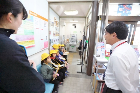 今日は、2年生が生活科の町探検で、総野郵便局、内田食堂、松野駐在所を訪れました。総野郵便局では、郵便局の大切な仕事について丁寧に教えていただきました。内田食堂では、料理がおいしくなる秘訣を聞き、子どもたちは興味津々。松野駐在所では、警察の仕事について学び、さらに酒酔い体験ゴーグルを使った体験も行い、安全の大切さを実感していました。地域の方とふれあい、あたたかさを感じ、充実した一日となりました。