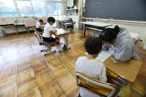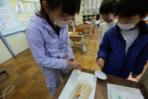 肥料をやる時期や病気を防ぐ方法などを聞き,どの子も熱心にメモを取っていました。また,「育てている野菜には去年育てたアサガオのように,双葉や本葉があるのか?」という疑問や「どうして渡辺さんは農家になったのか?」というような質問もしていました。