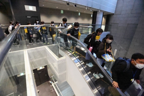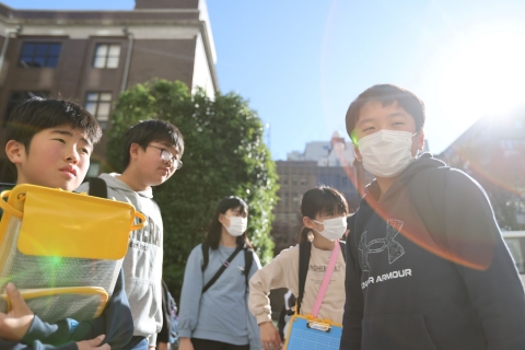 質問し終えた後には,渡辺さんのビニルハウスにおじゃまして,ナスやトマトを見せていただきました。見たこともないほど,大きなナスの背丈や葉に驚いたり、色づき始めたトマトに目を輝かせていました。「また,渡辺さんに教えてもらいたい。」と口々に言っていました。