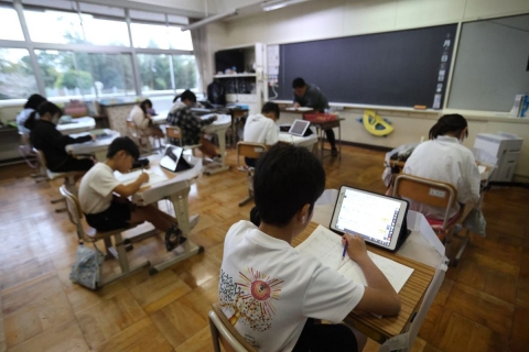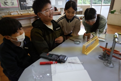 質問し終えた後には,渡辺さんのビニルハウスにおじゃまして,ナスやトマトを見せていただきました。見たこともないほど,大きなナスの背丈や葉に驚いたり、色づき始めたトマトに目を輝かせていました。「また,渡辺さんに教えてもらいたい。」と口々に言っていました。