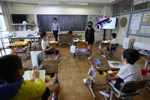 肥料をやる時期や病気を防ぐ方法などを聞き,どの子も熱心にメモを取っていました。また,「育てている野菜には去年育てたアサガオのように,双葉や本葉があるのか?」という疑問や「どうして渡辺さんは農家になったのか?」というような質問もしていました。