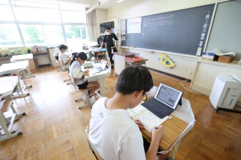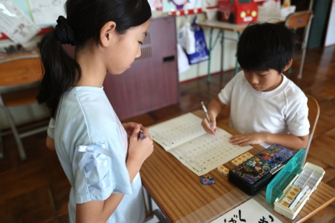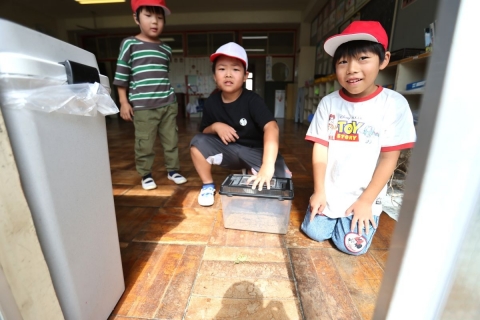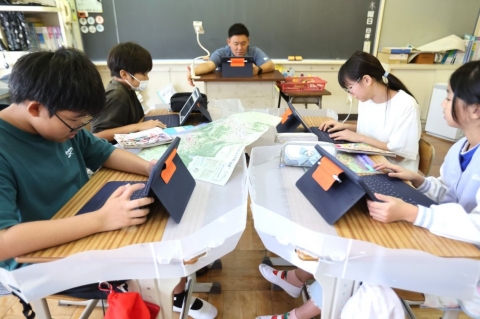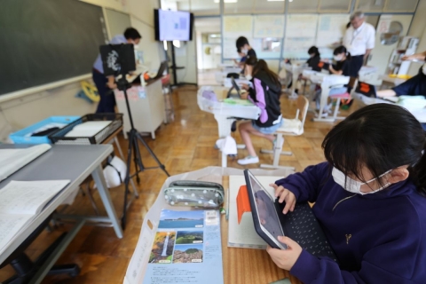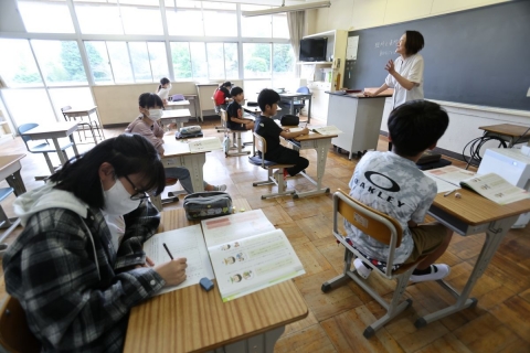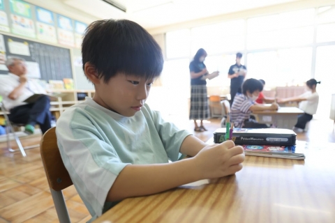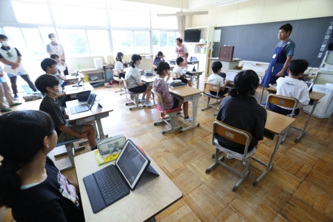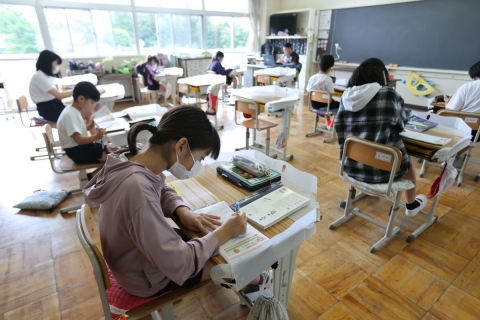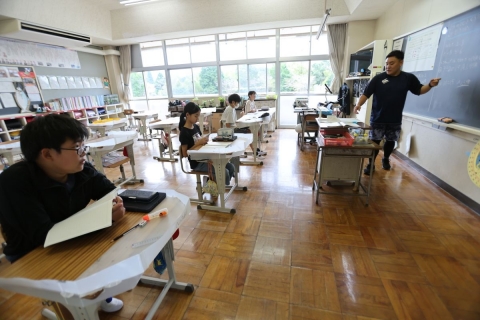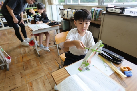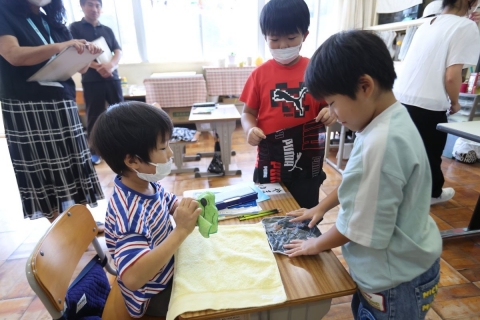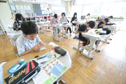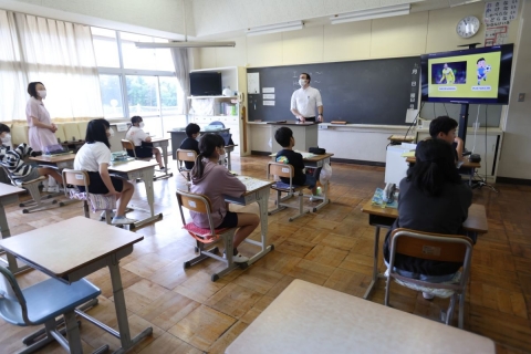 肥料をやる時期や病気を防ぐ方法などを聞き,どの子も熱心にメモを取っていました。また,「育てている野菜には去年育てたアサガオのように,双葉や本葉があるのか?」という疑問や「どうして渡辺さんは農家になったのか?」というような質問もしていました。