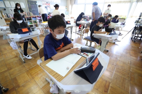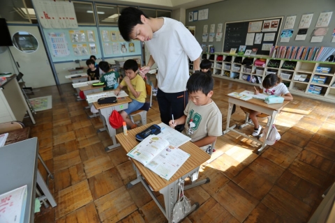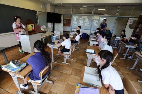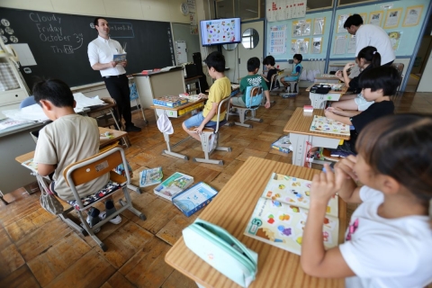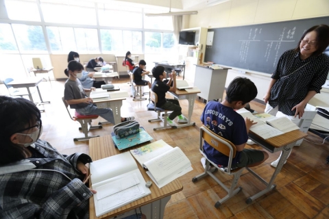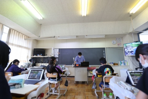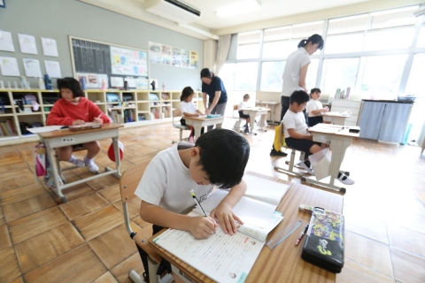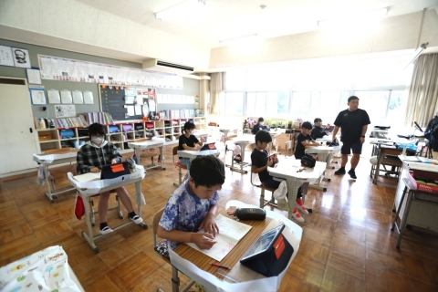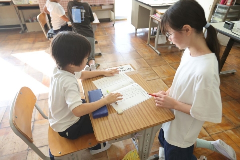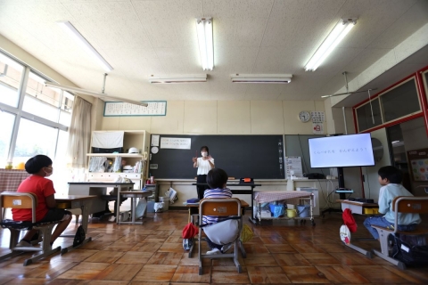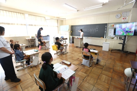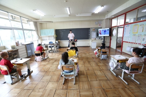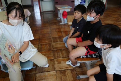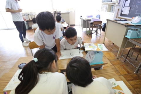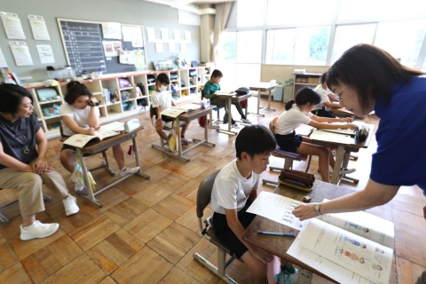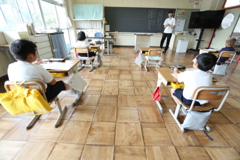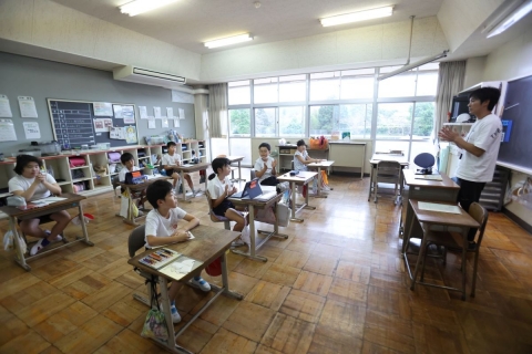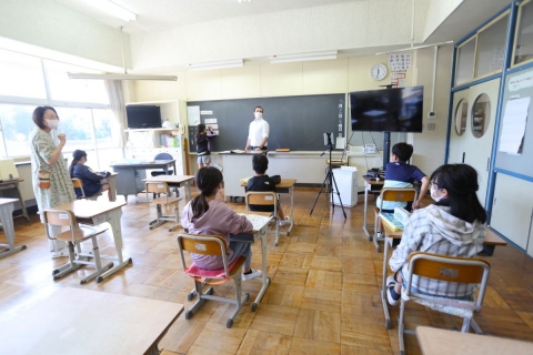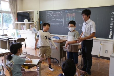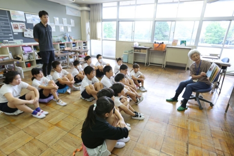 2年生は生活科「花ややさいをそだてよう(4)」で,自分の好きな野菜を栽培しています。本を読んで育て方を調べたり,家の人に聞いたりして育ててはいましたが,「ぜひ,農家の渡辺さんに聞きたい!」という子どもたちの要望があり,ゲストティーチャーとしてお招きしました。