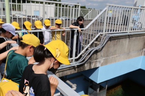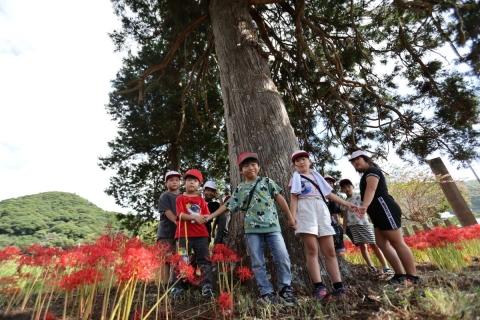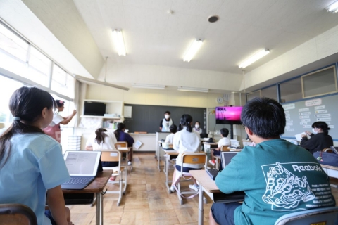 質問し終えた後には,渡辺さんのビニルハウスにおじゃまして,ナスやトマトを見せていただきました。見たこともないほど,大きなナスの背丈や葉に驚いたり、色づき始めたトマトに目を輝かせていました。「また,渡辺さんに教えてもらいたい。」と口々に言っていました。