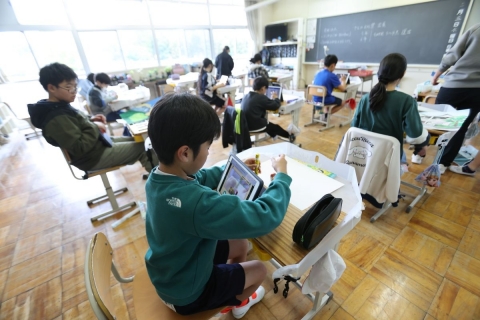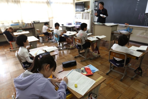 肥料をやる時期や病気を防ぐ方法などを聞き,どの子も熱心にメモを取っていました。また,「育てている野菜には去年育てたアサガオのように,双葉や本葉があるのか?」という疑問や「どうして渡辺さんは農家になったのか?」というような質問もしていました。