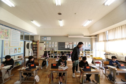 肥料をやる時期や病気を防ぐ方法などを聞き,どの子も熱心にメモを取っていました。また,「育てている野菜には去年育てたアサガオのように,双葉や本葉があるのか?」という疑問や「どうして渡辺さんは農家になったのか?」というような質問もしていました。