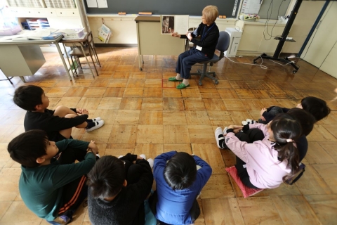 2年生は生活科「花ややさいをそだてよう(4)」で,自分の好きな野菜を栽培しています。本を読んで育て方を調べたり,家の人に聞いたりして育ててはいましたが,「ぜひ,農家の渡辺さんに聞きたい!」という子どもたちの要望があり,ゲストティーチャーとしてお招きしました。