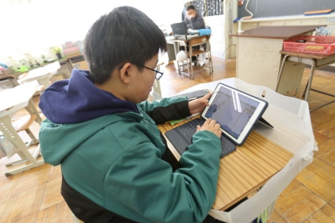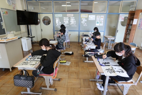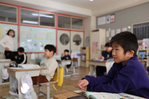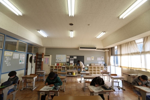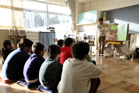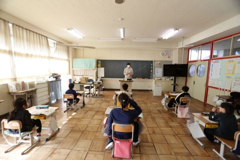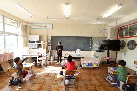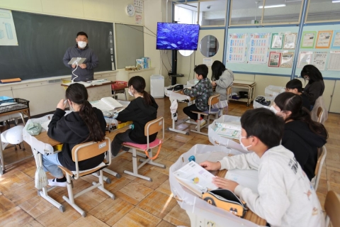 教室でインタビュー ビニルハウスの見学