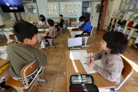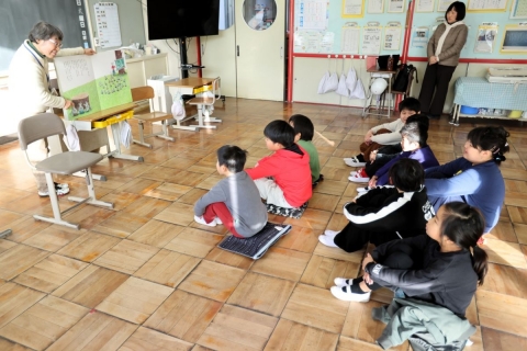 肥料をやる時期や病気を防ぐ方法などを聞き,どの子も熱心にメモを取っていました。また,「育てている野菜には去年育てたアサガオのように,双葉や本葉があるのか?」という疑問や「どうして渡辺さんは農家になったのか?」というような質問もしていました。