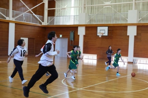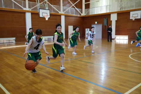 昨日、ミニバス部のお別れ試合が行われました。3年生の体験入部も兼ねており、体育館にはいつも以上に元気な声が響きました。先生方と試合をしたあとは、2チームに分かれて対戦し、みんなで声を掛け合いながら一生懸命にボールを追いかける姿がとても印象的でした。人数は少ないですが、6年生への感謝の気持ちを胸に、統合先の新しい学校でもそれぞれが力いっぱい頑張ってほしいと思います。