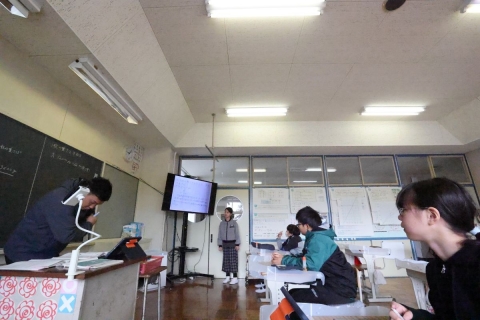 質問し終えた後には,渡辺さんのビニルハウスにおじゃまして,ナスやトマトを見せていただきました。見たこともないほど,大きなナスの背丈や葉に驚いたり、色づき始めたトマトに目を輝かせていました。「また,渡辺さんに教えてもらいたい。」と口々に言っていました。