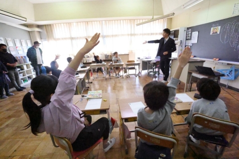 肥料をやる時期や病気を防ぐ方法などを聞き,どの子も熱心にメモを取っていました。また,「育てている野菜には去年育てたアサガオのように,双葉や本葉があるのか?」という疑問や「どうして渡辺さんは農家になったのか?」というような質問もしていました。