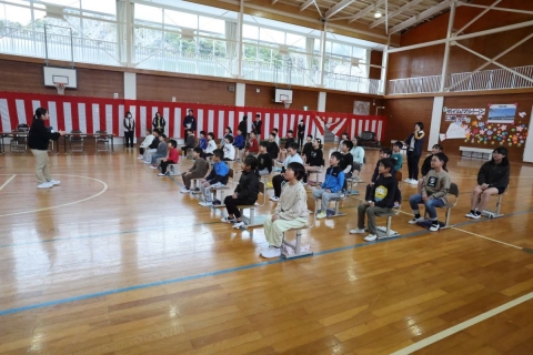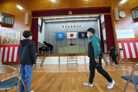 今日から全校で卒業式の練習が始まりました。体育館に集まり、座り方や礼の仕方などを一つ一つ確認しながら、真剣な表情で取り組む姿が見られました。また、歌唱指導の講師の先生をお招きし、卒業式で歌う歌についてご指導いただきました。講師の先生からは、歌詞の意味をよく理解し、気持ちを込めて歌うことの大切さについてお話があり、子供たちは言葉一つ一つを大切にしながら歌う練習を行いました。卒業生にとっても在校生にとっても心に残る式となるよう、これから練習を重ねていきます。
