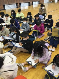 全校で校歌を歌い、体育館いっぱいに響く子どもたちの元気な歌声から、新しい年への意欲が感じられました。