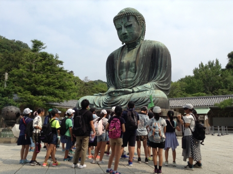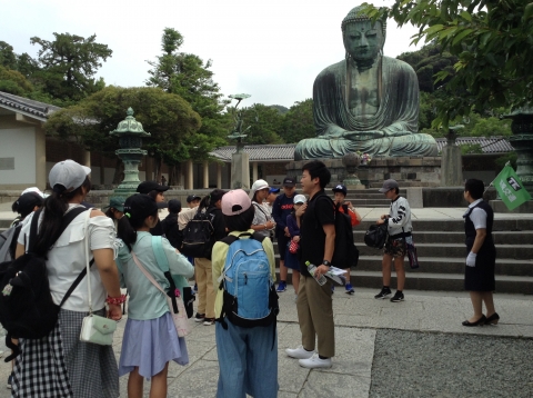 ガイドさんの話を聞きながら、大仏さまを見上げます。